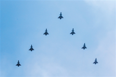 歼-10A战机编队飞过天安门广场上空。图/CFP