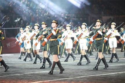 女仪仗队员走出国门参加俄罗斯“斯帕斯”军乐节。孙德玺 摄