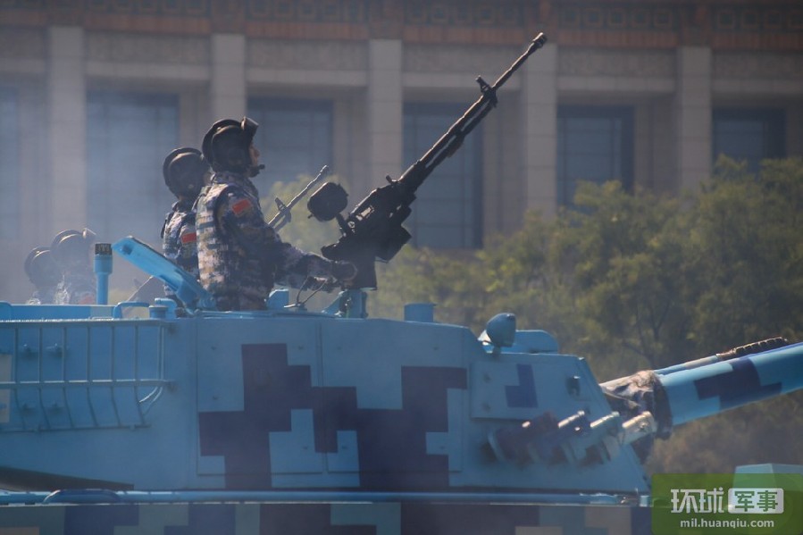 阅兵现场的05式两栖突击车排成第二装备方阵接受检阅