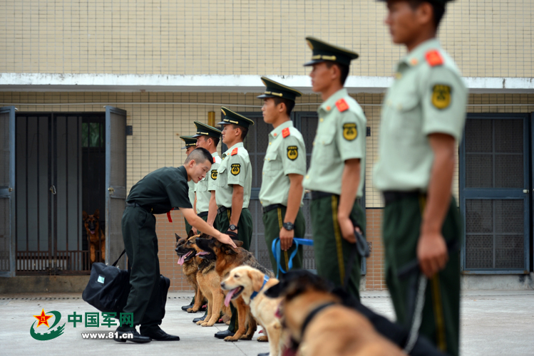 9月10日,武警重庆总队七支队特勤中队警犬班的训导员蒋治杰退役,在离开营区时,与他朝夕相处的警犬迪娜舍不得他离开部队,咬住行李不放,和蒋治杰亲吻惜别。当日,该总队千余名满服役期的老兵离开部队,安全返乡。