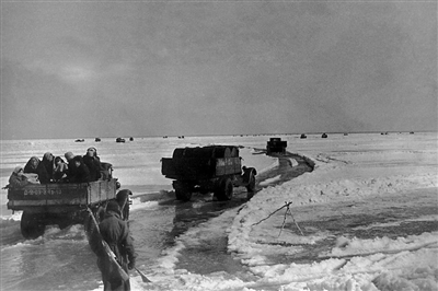 列宁格勒三面被围后,列宁格勒人奇迹般地在拉多加湖冰面上开辟了一条冰上公路。就是这条后来昼夜通行的冰上公路在1941~1942年间冬季列宁格勒处于饥饿围困最艰难的期间,连接了拉多加湖东西两岸的运输线,运进粮食,运出伤员,成了列宁格勒赖以取得外界支援的唯一通道,因而被列宁格勒军民誉为他们的“生命之路”。因为该道路非常危险,车辆可能被雪阻塞或被德军轰裂冰面而沉入湖中,因此亦被称为死亡之路,仅1941年冬,就由这条交通线运进36.1万多吨物资,其中包括27.1万吨粮食。靠着这条生命之路,列宁格勒人战胜了严寒和饥饿的威胁,挫败了德军困死列宁格勒人的企图。