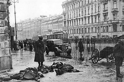 列宁格勒被围困期间,涅瓦大街上冻饿而死的人们。资料图片