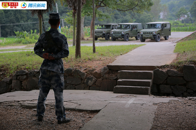 即使下起大雨,营区外的警戒执勤也一直没有间断,不过幸好山里的阵雨来去匆匆。小路上偶尔会有当地人路过,用好奇的眼神打量这些身着蓝色迷彩服的士兵们。