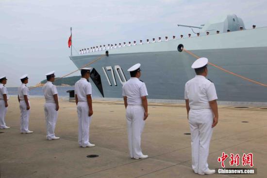 9月12日上午,由1艘导弹驱逐舰、1艘导弹护卫舰、1艘医院船组成的中国海军舰艇编队,起航前往马来西亚参加中马“和平友谊-2015”联合实兵演习。 中新社发 李纯 摄