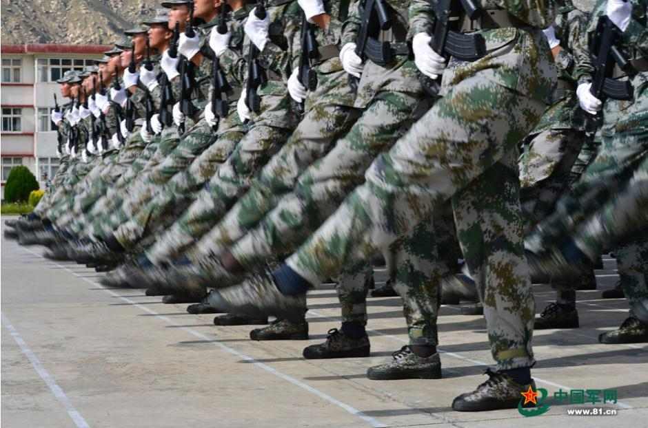 西藏拉萨女民兵兴奋见坦克 表演T台步