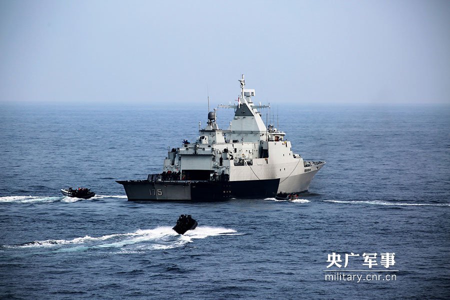 中马联合军演在马六甲海峡展开 模拟解救船只