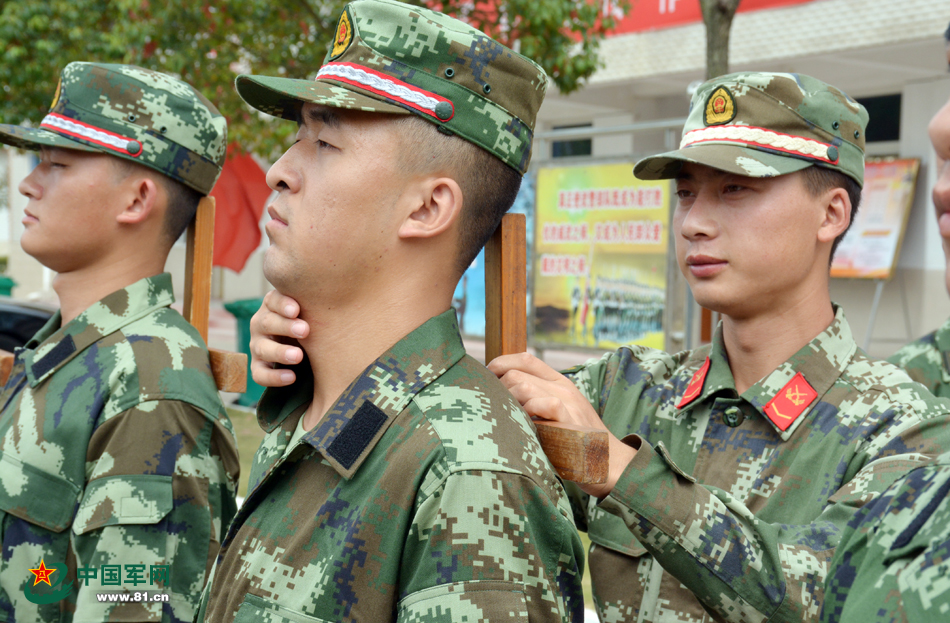 武警95后新兵训练 身背“十字架”练习军姿