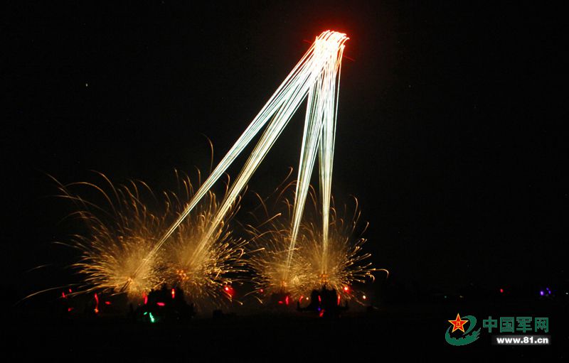 解放军密集夜训 新型火箭炮齐射染红夜空