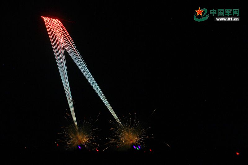 解放军密集夜训 新型火箭炮齐射染红夜空