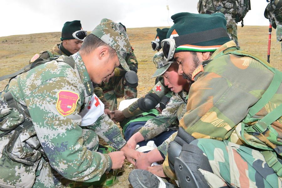 中印边防部队举行首次人道主义联合救援行动演练