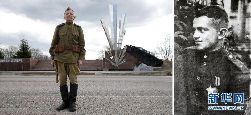70年前,苏联军民经过4年浴血奋战,以牺牲2700万人的代价,战胜了德国法西斯。自1945年起,苏联将5月9日确定为卫国战争胜利日。这组照片将展示5名不同兵种的苏联士兵今昔对比情况。右图是苏联士兵尼古拉·梅尔尼科夫的资料照片。他在卫国战争时先后担任南方面军和乌克兰方面军的地道兵和工程兵,曾参加斯大林格勒保卫战。左图是92岁的尼古拉·梅尔尼科夫站在俄罗斯莫斯科的十一地道兵纪念碑前(2015年4月13日摄)。新华社/路透