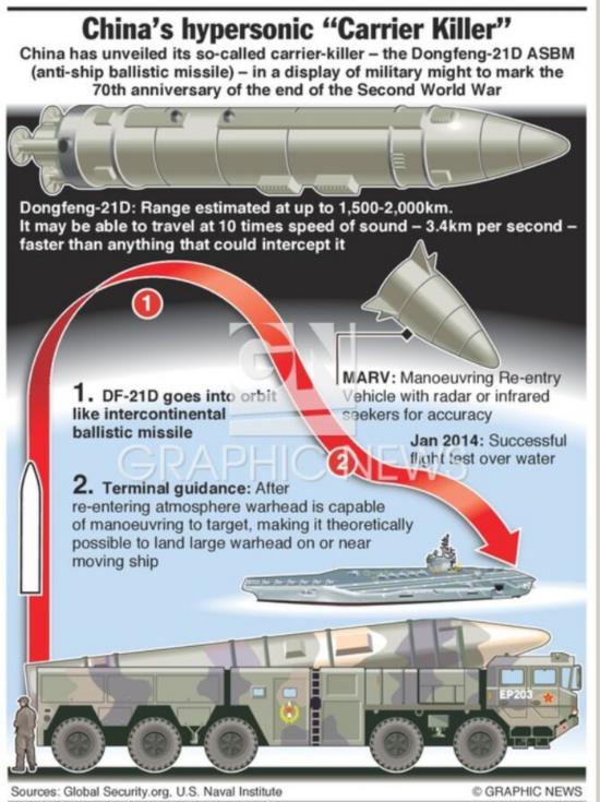 东风-21D导弹反舰攻击示意图