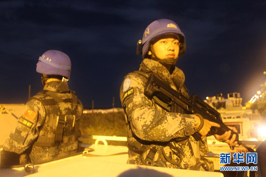 中秋之夜,我国首支赴南苏丹维和步兵营官兵仍坚守岗位值守和平,图为维和步兵营官兵在难民营周边乘车巡逻。孟伟建摄