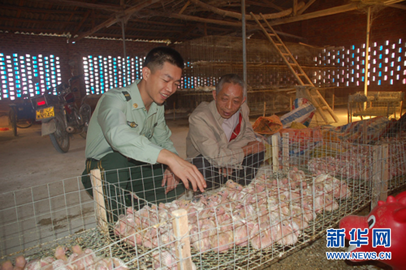 资料图:朱伟英指导移民村的养殖户饲养鸽子