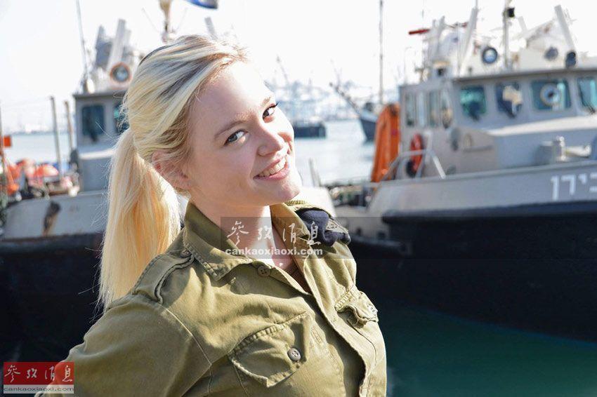 以色列海军女兵与巡逻艇合影。