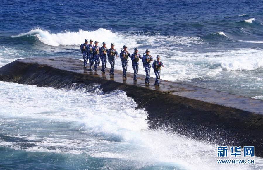 海军南沙守礁官兵在永暑礁上巡逻值勤。 新华社记者 查春明 摄