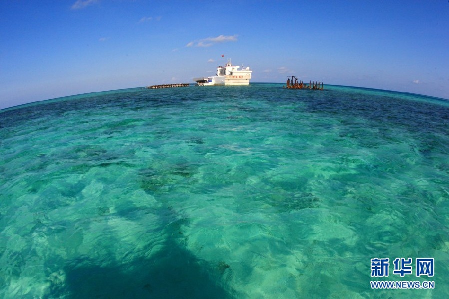 这是矗立在南沙礁盘上的第三代“高脚屋”。 新华社记者 查春明 摄