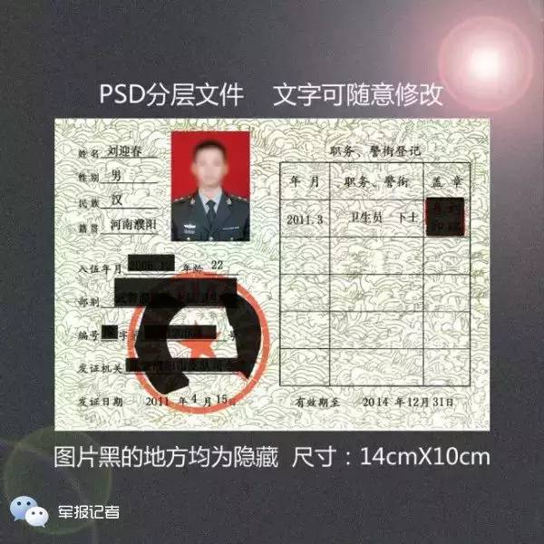 2、军官证上应同时在照片处盖有钢印、在发证机关处盖有红印。红印应与发证机关记载的单位一致,红印的底部应带有“证件专用章”字样。