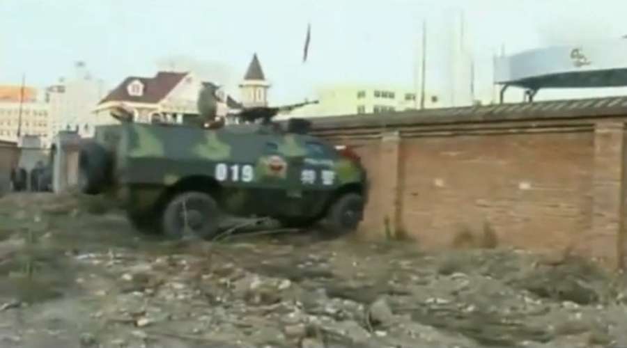 中国05式防爆装甲车冲撞能力测试。一般的建筑墙体也可一穿而过。