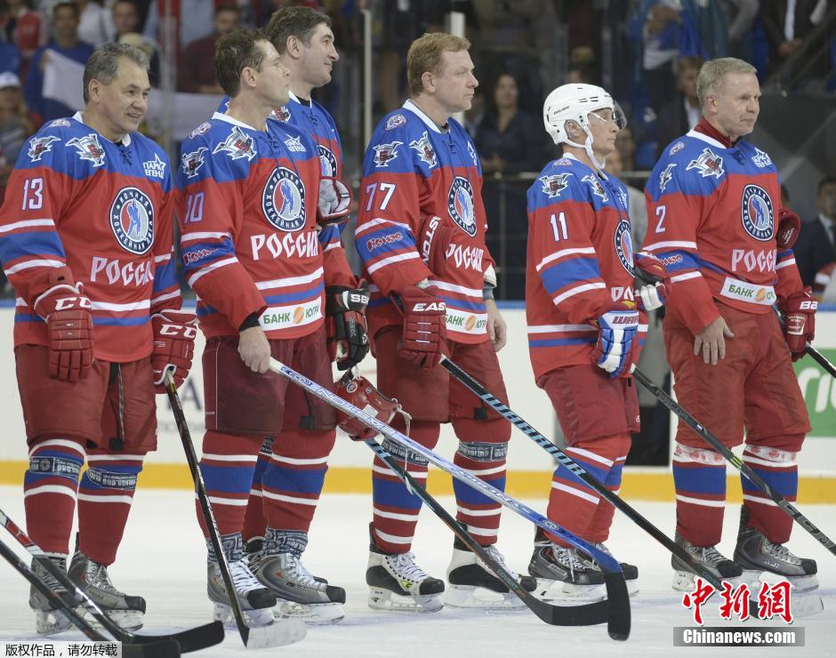 当地时间2015年10月7日,俄罗斯索契,俄罗斯总统普京在其生日当天将与著名冰球运动员以及夜冰球联盟参与者一起打冰球。10月7日俄罗斯总统普京将迎来63岁生日。普京已经多次参加夜冰球联盟的比赛。最近一次他于5月上场比赛,普京当时打进了8个球,他所在的球队以18比6获胜。