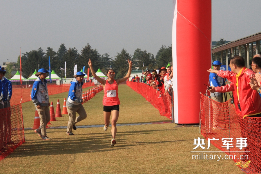 我军运动员第一个冲过终点线,荣获个人项目比赛的冠军