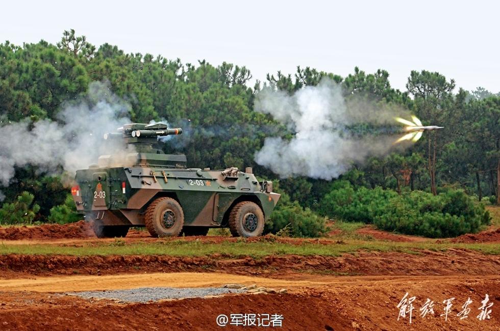 解放军红旗9重型反坦克导弹发射车发射导弹瞬间