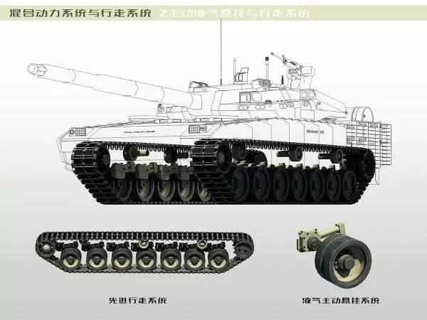 (2)主动液气悬挂与行走系统 FAAS的悬挂及行走系统由二代轻型坦克的悬挂与行走系统改进发展而来。 ①FAAS的行走系统直接沿用了新轻坦的640mm负重轮、托带轮、诱导轮以及履带,并将负重轮的数量增加到7对。 ②对原有液气悬挂系统的进行了深度改进,改进后的悬挂系统可靠性、承载性能都有了显著提升,还可根据行驶条件主动调节悬挂行程,悬挂调节行程不小于 200/-300mm。先进液气主动悬挂的应用使得FAAS能很好地适应各种崎岖地形并大幅提高越野速度和高速行驶的平稳性,从而实现不小于80km/h的公路速度和不小于50km/h的越野速度。 强劲的动力结合先进行走系统,使得FAAS的越野速度与机动性能远优于第三代坦克。