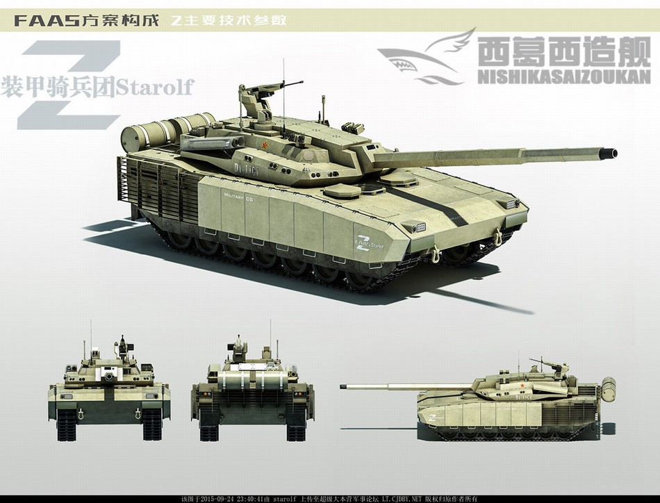 (3)大量采用已经在现有装备上广泛应用的成熟技术,比如99A、新轻坦等已经使用复合装甲技术、观瞄火控技术等经过适度改进就完全可以满足四代坦克的需求。如此一来,可以有效降低开发过程中的技术风险,还能显著降低装备采购及维持成本,提高新型坦克服役后的装备继承性,加速形成战斗力。保守估计在2025年之前即可定型装备部队并初步形成战斗力。 根据上述需求分析,笔者提出了被命名为“前线装甲突击系统”(Frontline Armored Assault System,后文简称FAAS)的我军第四代主战坦克概念设计方案。