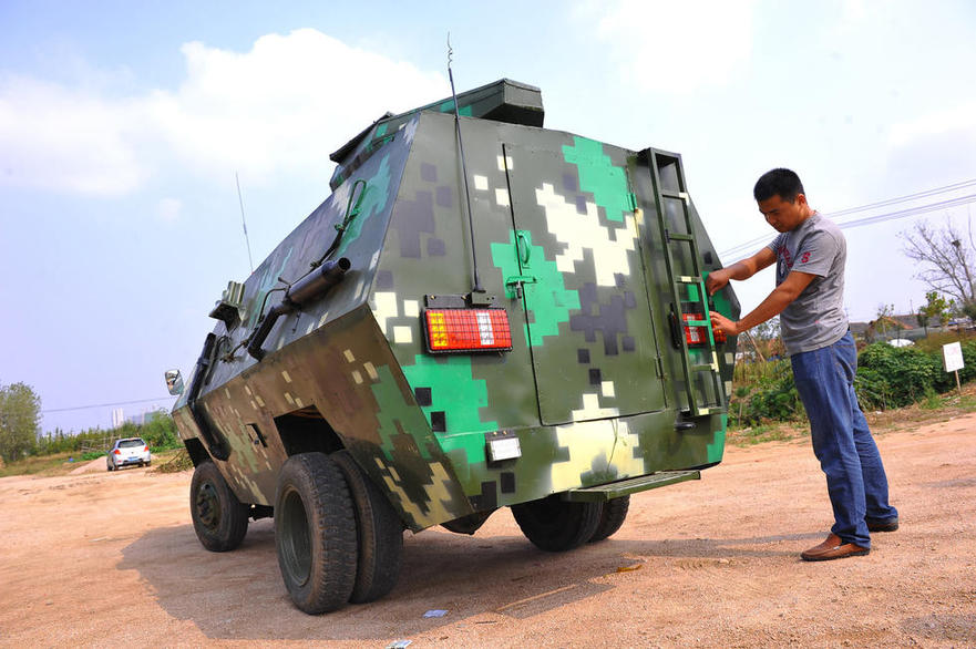 从今年3月份开始,他就着手打造自己的“装甲车”,先后画了数张草图,并购买了一辆报废的轻卡车,开始改装。他利用汽车上的废旧排气管、铁皮和铝塑板等材料,花费3万元,利用业余时间,于今年十月初成功的打造出了自己的“装甲车”。
