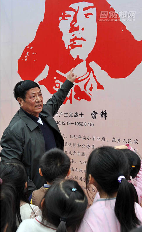 退休后的朱伯儒经常给小朋友讲雷锋的故事。(沈玲摄)