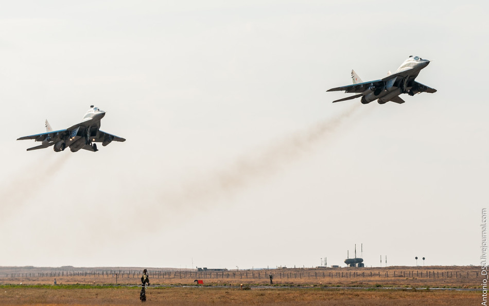 俄罗斯空军近日公开了驻阿斯特拉罕州机场米格-29UB部队训练图片。参与训练的米格-29双座型战斗教练机,挂载了两具大容量火箭发射巢,每具可加装20枚火箭弹。