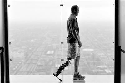 一名美国男子用意念控制机械假肢行走