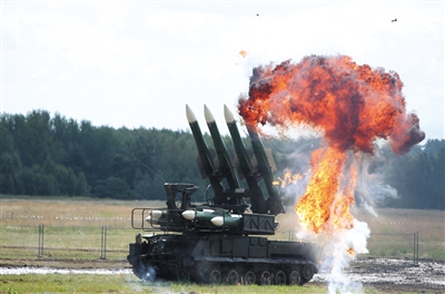 俄罗斯山毛榉防空导弹发射车。