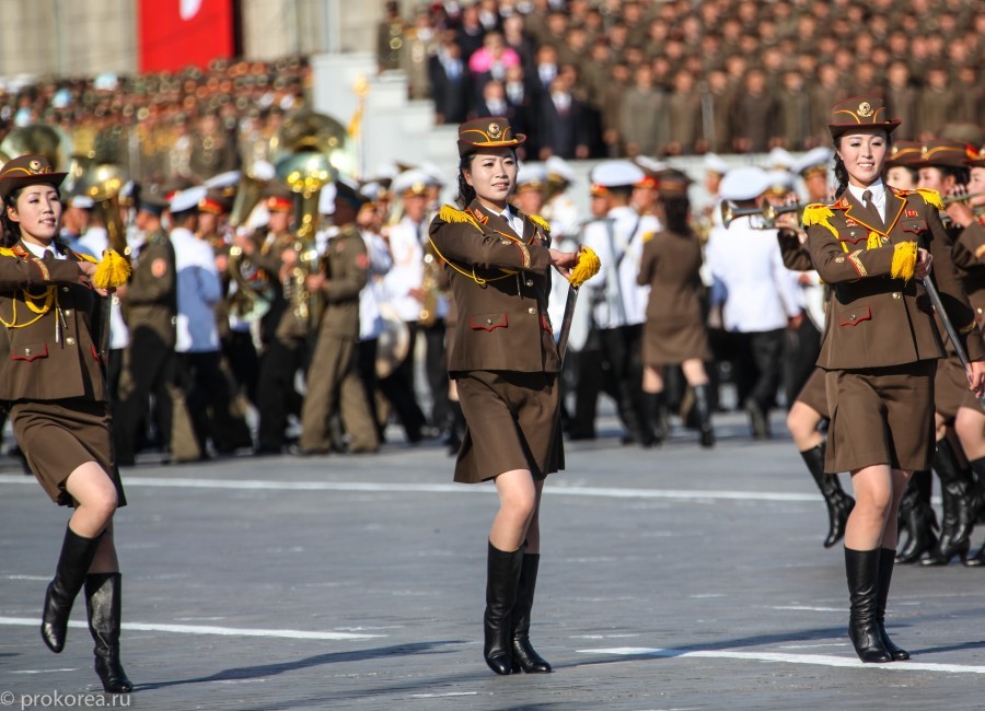 近看朝鲜阅兵式上的女性面孔:女兵走正步气势十足