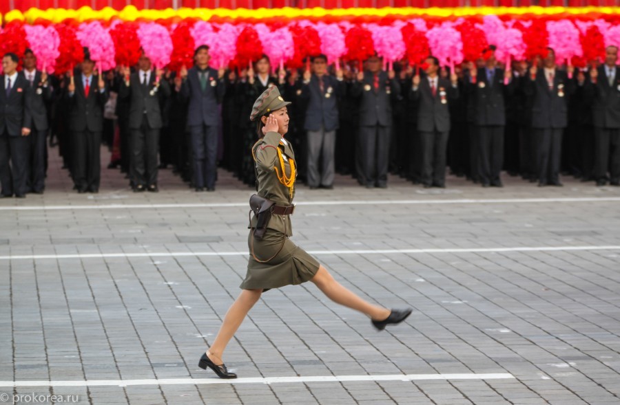 近看朝鲜阅兵式上的女性面孔:女兵走正步气势十足