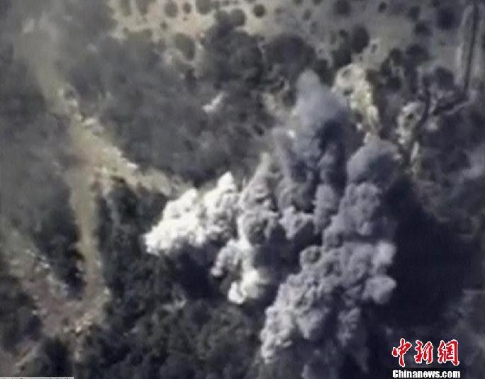 当地时间10月13日,俄罗斯国防部公布的视频显示俄罗斯战机空袭叙利亚境内极端武装时,导弹击中了弹药库引发大规模爆炸。