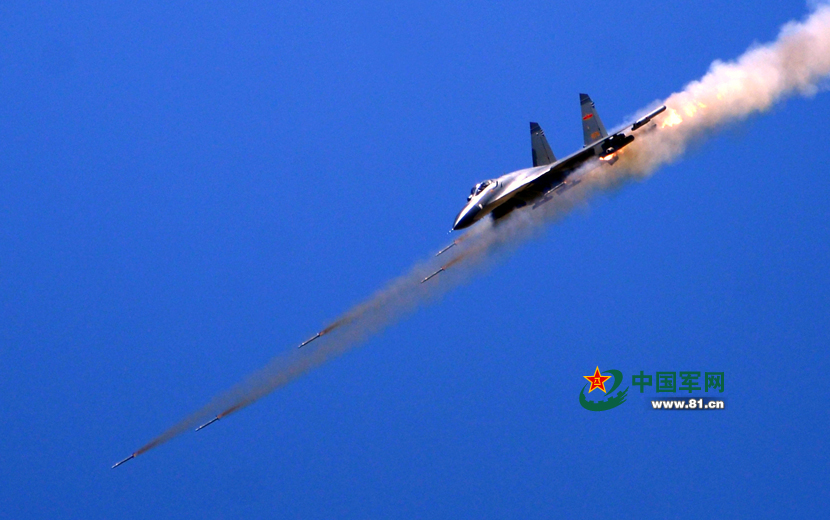 我军新型战机火箭满载齐射地靶
