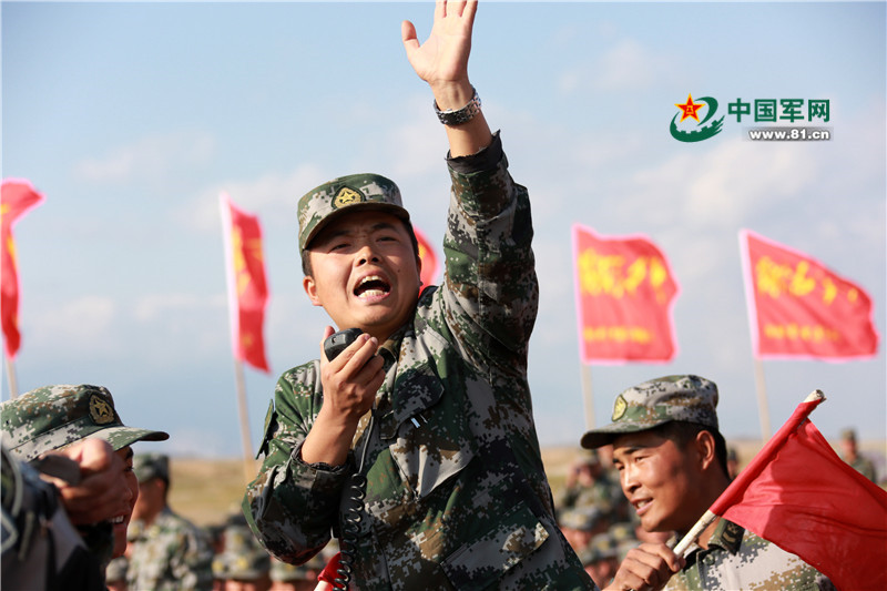 兰州军区某红军团注重用战斗文化激励官兵战斗精神,通过开展唱战斗歌曲,讲战斗故事等活动,提升部队的战斗作风和凝聚力。图为10月13日,该团在贺兰戈壁组织拉歌比赛的场景。