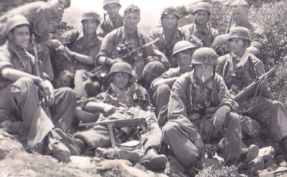 1940年4月,德军突然向丹麦发起空降突击,1个伞兵连直扑丹麦奥尔堡两侧的机场和沃尔丁堡大桥。面对从天而降的德军,丹麦守军惊得目瞪口呆,一枪未发就缴了械。在空降兵的接应下,德军登陆部队如入无人之境,毫无阻挡地一直推进到丹麦首都哥本哈根。开战仅4个小时,丹麦便宣布投降。图为克里特之战后疲惫不堪的德国伞兵。