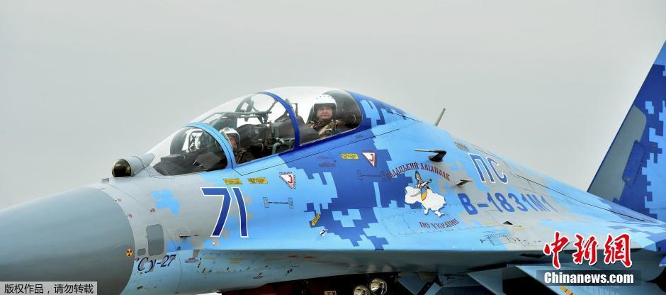 当地时间10月14日,乌克兰扎波罗热,乌克兰庆祝保卫日,总统波罗申科亲自试乘苏-27战斗机。
