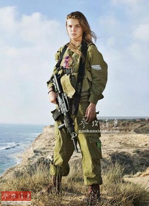 以色列高颜值女兵背枪不怕裸 倒挂炮管玩