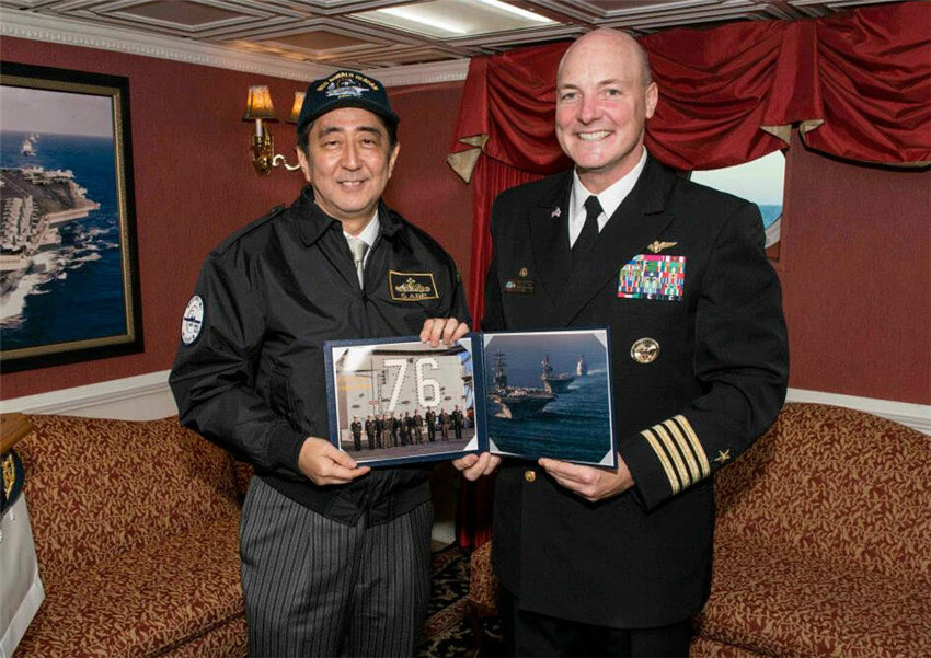 【环球网报道 记者 王欢】据日本《读卖新闻》10月18日报道,日本首相安倍晋三18日搭乘部署在美海军横须贺基地的“罗纳德·里根”号核动力航母。据日本政府相关人士透露,这是日本在任首相首次搭乘美国航母。此举是为了鉴于安保相关法成立彰显牢固的美日同盟。