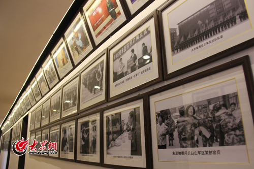 朱呈镕办公室外狭长的走廊上挂满了她与所慰问部队战士们的合影。
