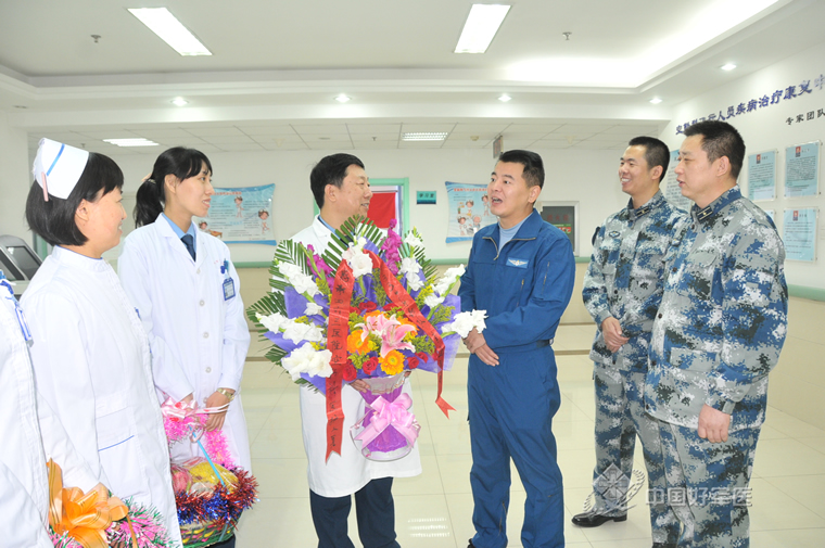 10月14日,处置空中重大特情的空军某团参谋长李通在第463医院临床治愈。出院前,他特地让家人买来一束鲜花送到空勤科医护人员手中,并真诚表达了自己的切身体会:“我回去要告诉我的战友们,有医院这个坚强后盾,我们战斗机飞行员即使在训练强度增大和风险增高,也没有不敢打、不敢冲的,即使受伤也尽可放心了!”