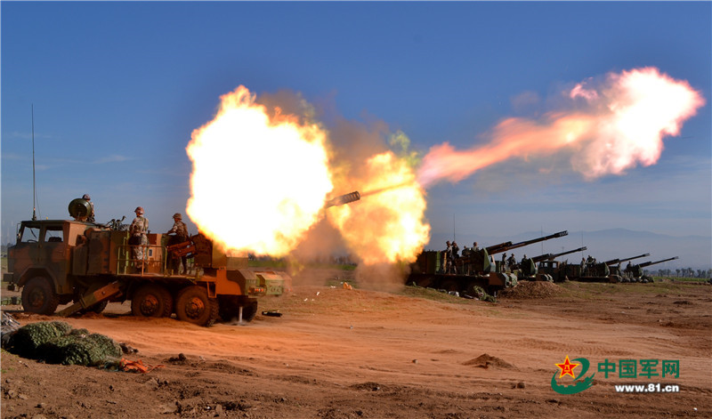 某炮兵团车载榴弹炮分队实弹射击训练