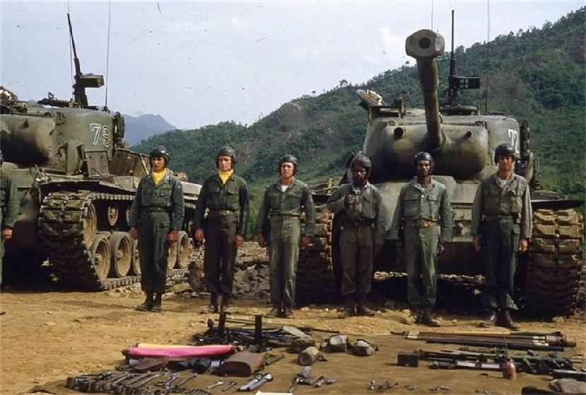 美国陆军第140坦克营的士兵(装备M46“巴顿”坦克),朝鲜战争期间,第40步兵师的组成部分。