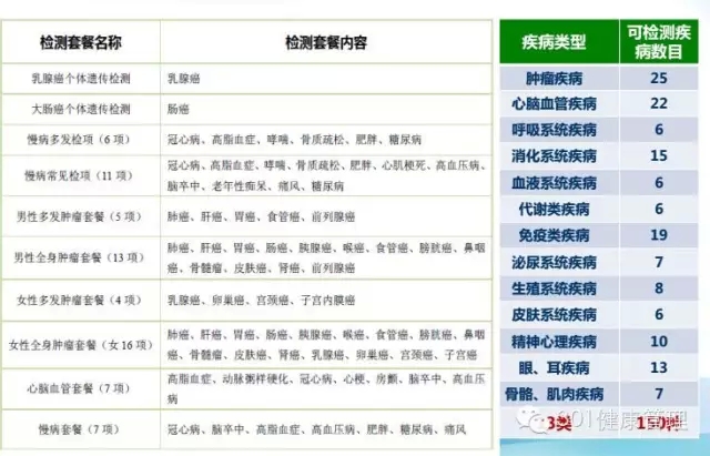 解放军总医院健康管理研究院开展疾病易感基因检测,通过对肿瘤、心脑血管疾病、代谢性疾病、消化系统疾病、呼吸系统疾病、自身免疫性疾病等13大类150种(男性64项、女性67项)慢性疾病易感基因进行检测,对患病风险进行评估和预警,并制定精准的个性化健康管理方案,指导疾病预防和治疗。