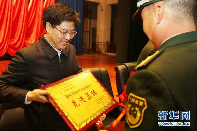 西藏自治区副主席何文浩为先进集体颁发奖牌