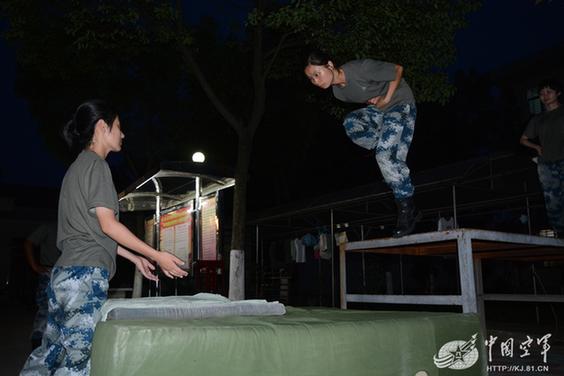 “报告,我腿酸!”伞训开始第一天,蹲离机过程中,女学员张欣欣打报告。“坚持!”教员冷冷地喊了一句。张欣欣心里百般无奈,面对教员严厉且带有刺耳的话语,眼中闪出泪花。
