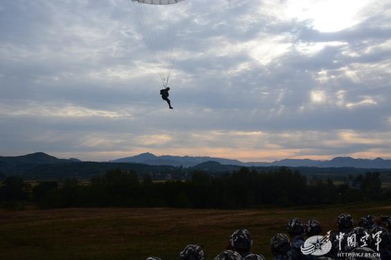 “离机准备……跳!”随着投放教员响亮的口令,“0001秒、0002秒、0003秒……”杨晓林大声喊道!伞开了,如一朵白色的玫瑰绽放苍穹,杨晓林脸上露出了久违的笑容。(王存明)